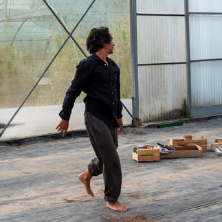 En fin d'après-midi, le public a été enjoint à se rassembler pour assister au spectacle immersif qui mêlait certaines capsules de sons, les pas de danses et les tableaux le long d'un cheminement dans le paysage des Fenêts. Nous avions fait le choix de nous mêler sans fusionner ; ainsi quand Jean-Jacques dansait il n'y avait ni son ni tableau et inversement.